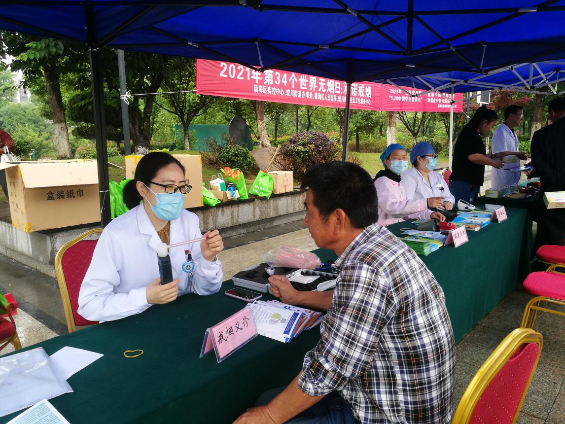 相信很多人明白了戒烟的危害后都有过戒烟的想法或者尝试着戒烟,但效果欠佳。那么,怎样才能实现戒烟呢?总院第一支部利用5月份“我为群众办实事”这一主题为契机,先后多次在蛟川体育公园、招宝山街道海港社区、总院门诊大厅开展关于“戒烟门诊,带你科学戒烟”、“防治烟草相关疾病”的戒烟宣教及义诊活动,向居民介绍吸烟的危害以及如何实现科学戒烟并提高戒烟成功率,同时为部分吸烟人群监测了呼出气一氧化碳水平,便于对自己的吸烟程度有明确认知,有利于提高患者的戒烟意愿,完成科学健康的戒烟。
