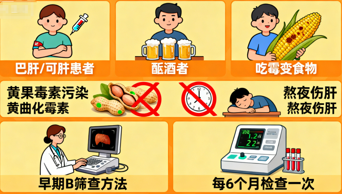 肝癌有“偏爱”的人群:乙肝、丙肝患者和肝硬化患者是高危中的高危,约80%的肝癌都和病毒性肝炎相关;长期酗酒、吃霉变食物(含黄曲霉素,是强致癌物)、有肝癌家族史的人,风险也会飙升。年轻人别觉得“肝癌是老人病”,长期熬夜、乱吃药伤肝,也会被肝癌盯上。